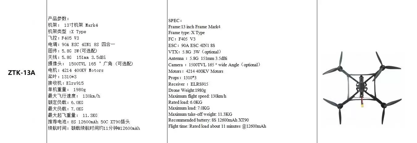 zd1 / Produk / Platform Drone / Drone FPV / Drone FPV 13 inci dengan Panduan AI dan Transmisi Serat Optik Bahan bodi : serat karbon