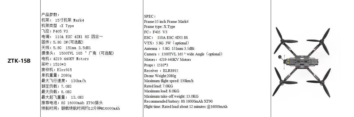 zd1 / Produk / Platform Drone / Drone FPV / Drone FPV 15 inci dengan Panduan AI dan Transmisi Serat Optik Bahan bodi : serat karbon